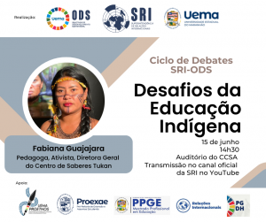 O Ciclo de Debates SRI-ODS – “Desafios da Educação Indígena” com Fabiana Guajajara acontece no dia 15 de junho, às 14h30, no Auditório do CCSA, Campus São Luís, com transmissão on-line.